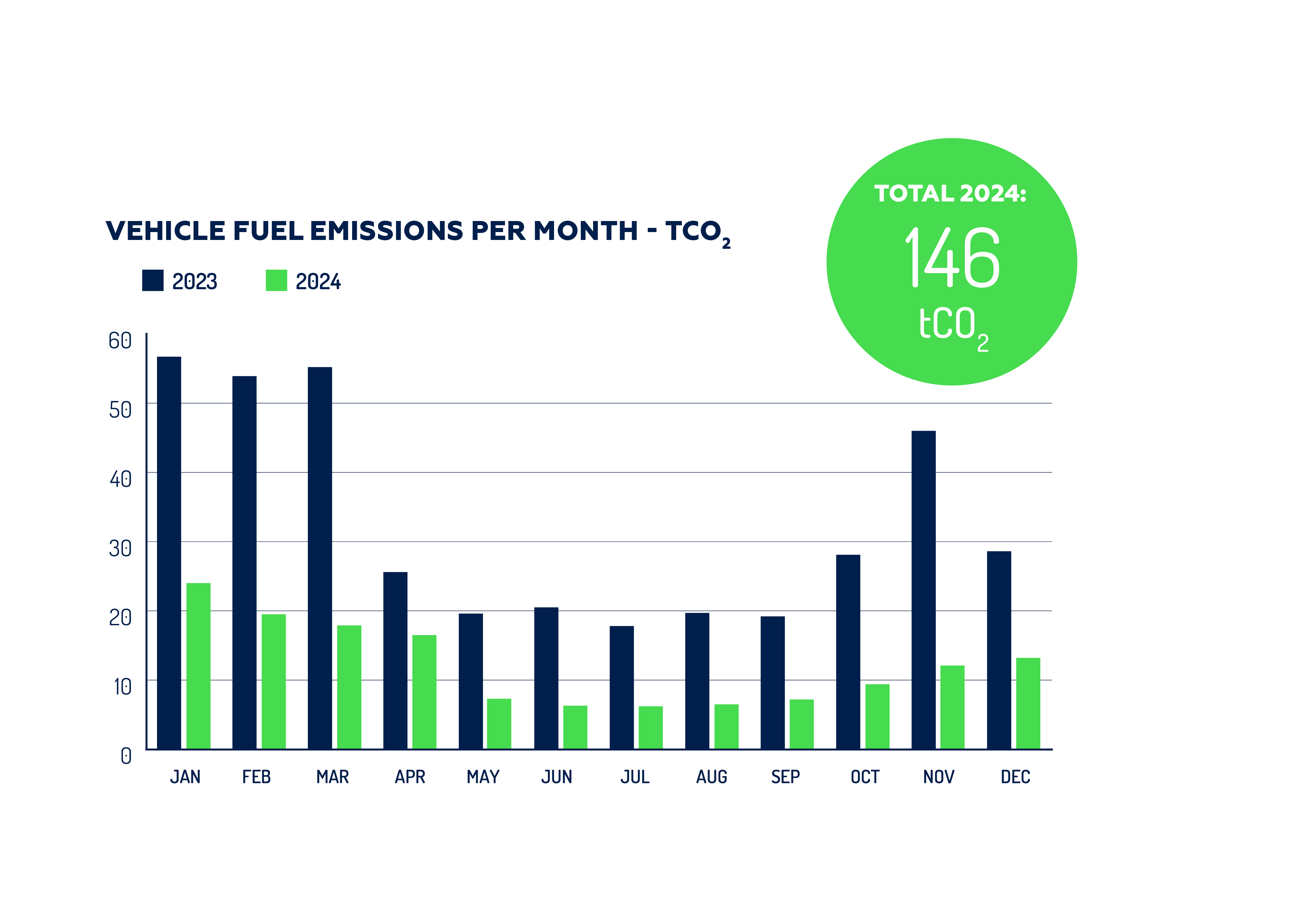 Our CO2 emissions mainly arose from the operation of our ground handling service equipment and vehicles. Therefore, in 2024, we switched to renewable Neste MY Renewable Diesel™ and Neste MY Renewable Fuel Oil™at all our 11 airports, which lead to major emission savings. Renewable fuels can reduce the carbon footprint by up to 90 % over its entire lifecycle compared to fossil fuels.